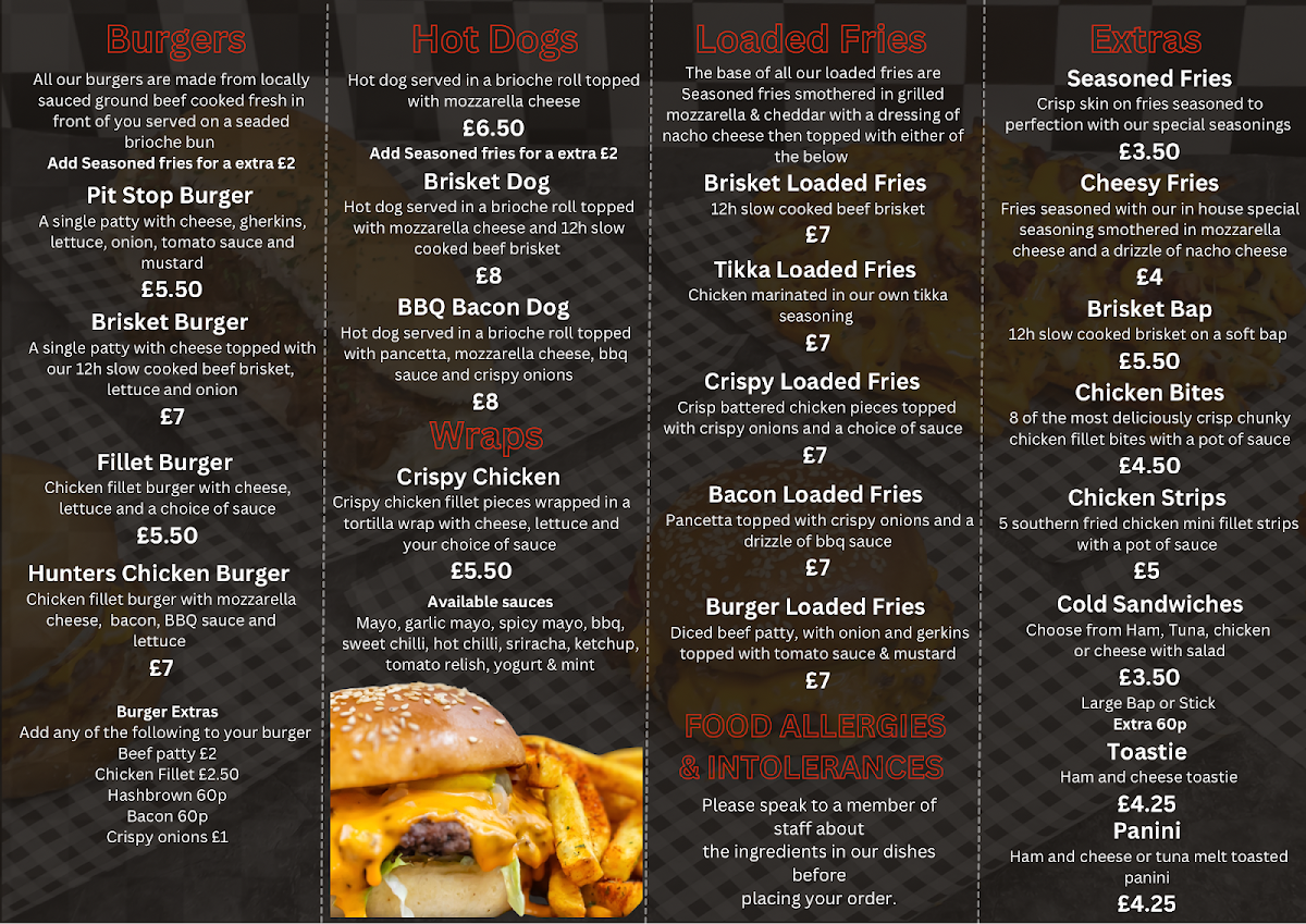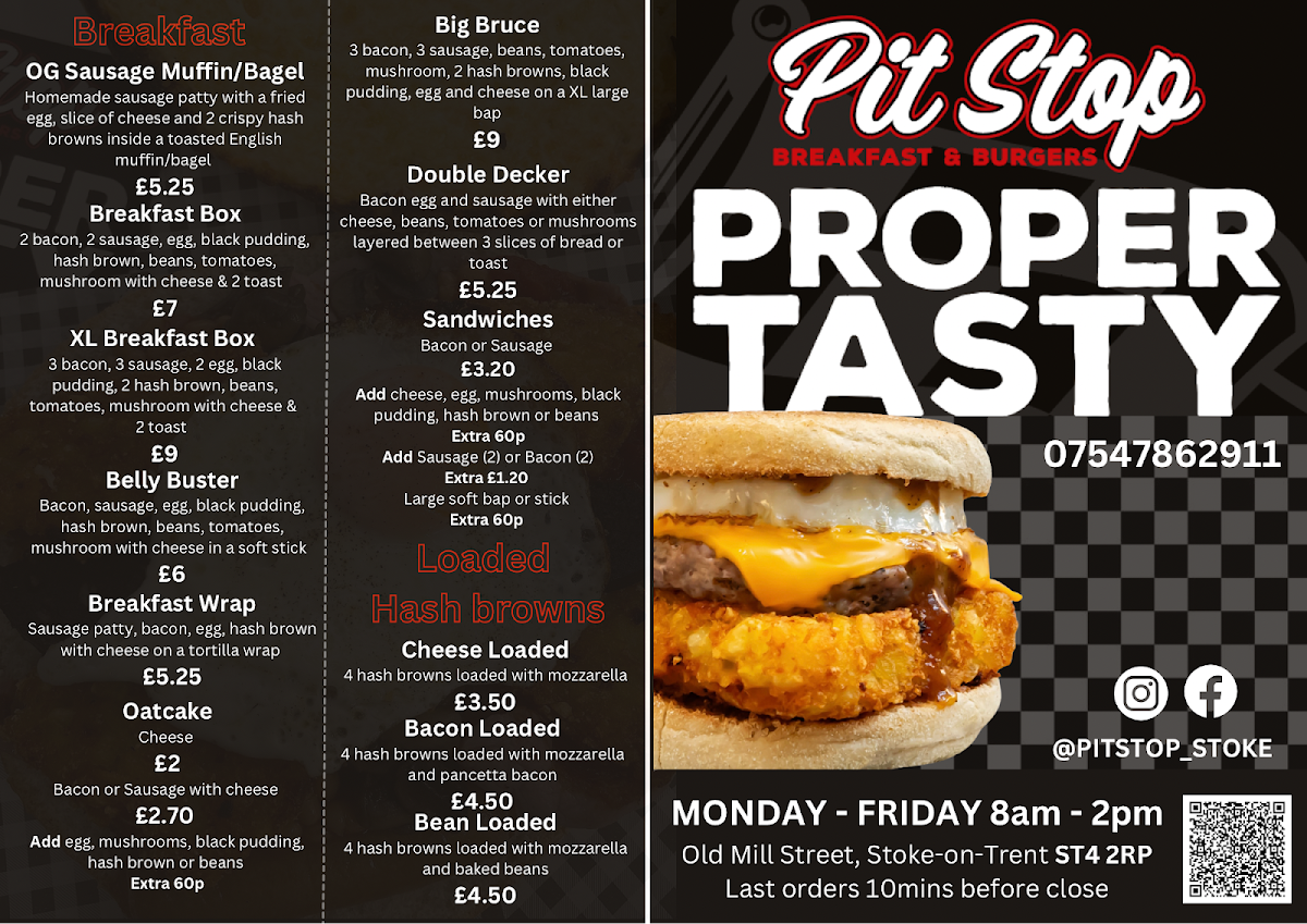 Pit Stop Stoke-on-Trent Menu